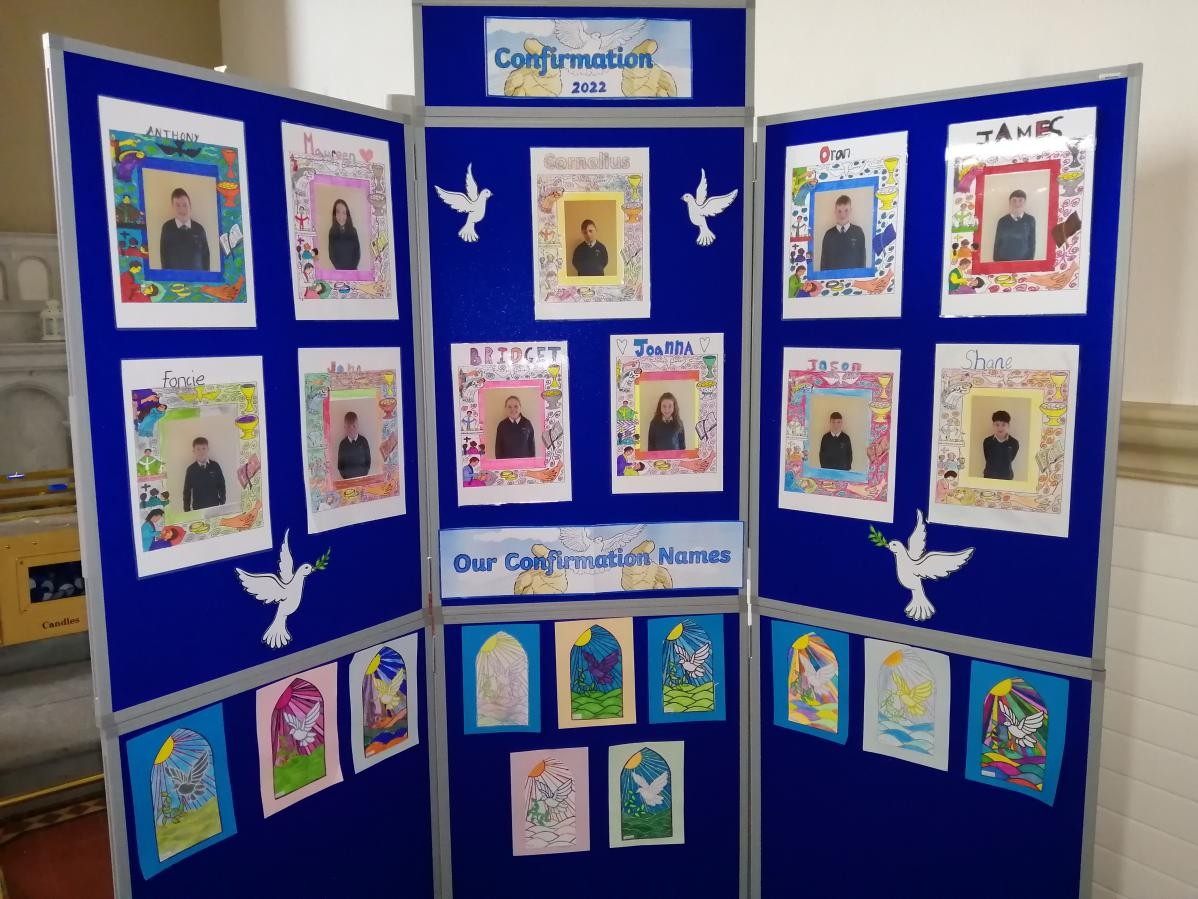 The 11 pupils from Sixth Class made their Confirmation with Bishop Martin Hayes on Saturday 14th May. It was a very special occasion for Éadaoin, Ellen, Maria, Brandon, Charlie, Conor, Dylan, Kieron, Oisin, Ronan and Senan. It was Bishop Martin’s 1st Visit to St Matthew’s Church , Crosskeys.